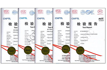 2020年05月24日,我司先后經(jīng)過**電器產(chǎn)品質(zhì)量監(jiān)督檢驗中心、遼寧高壓電器產(chǎn)品質(zhì)量檢測有限公司等機(jī)構(gòu)的檢驗,我司產(chǎn)品符合質(zhì)量要求,順利取得高壓產(chǎn)品檢驗報告
